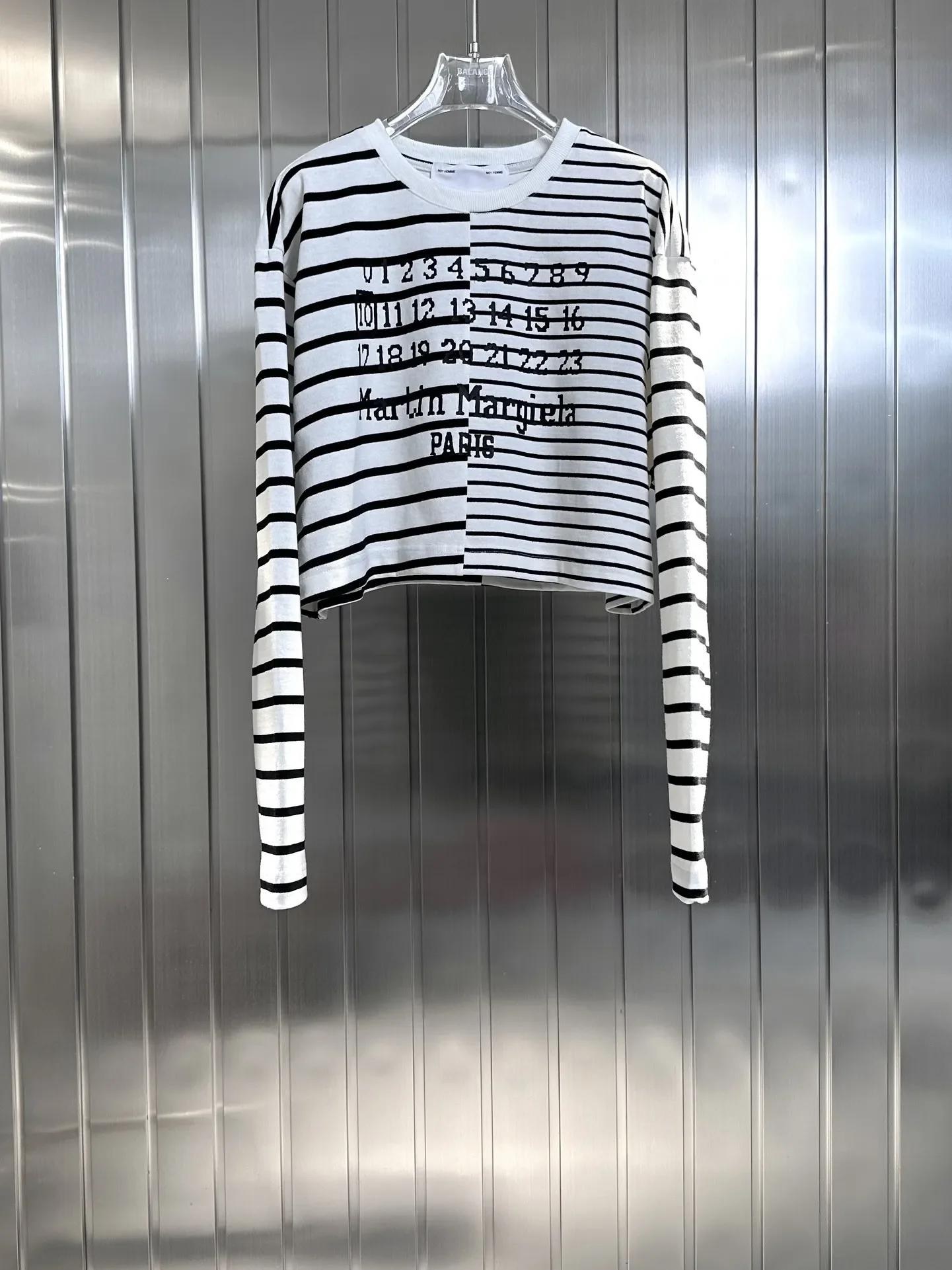 Футболка женская хлопковая в полоску, с длинным рукавом и круглым вырезом