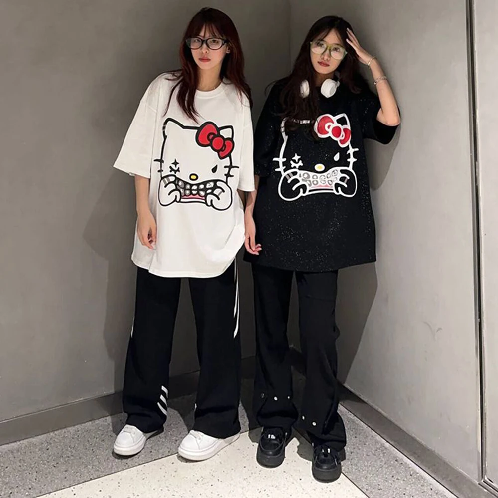 Футболка женская хлопковая с принтом Hello Kitty, милая удобная свободная Повседневная рубашка с коротким рукавом, с аниме принтом Kt Sanrioed, для пар, на лето