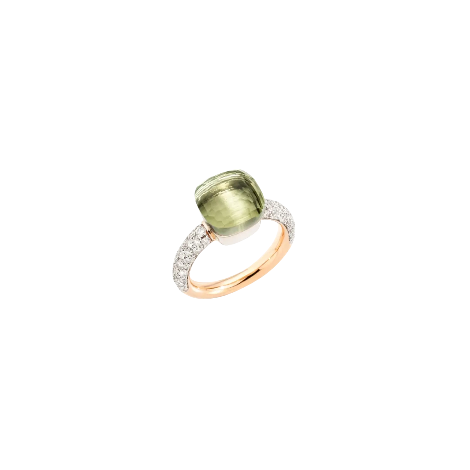 Классическое кольцо телесного цвета из розового и белого золота с празиолитом и бриллиантами Pomellato