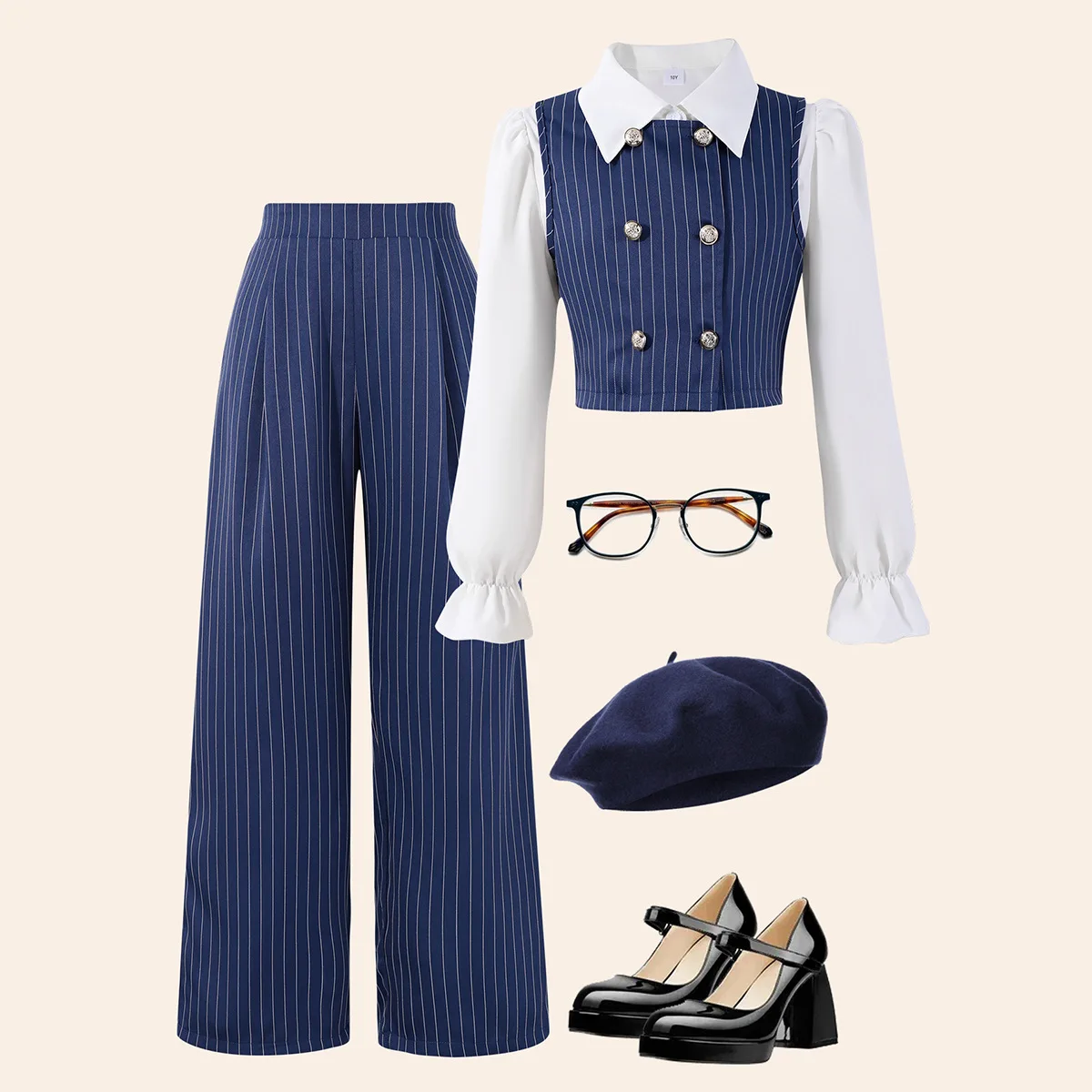 Комплект одежды из 3 предметов для девочек, костюмы для девочек, детская официальная одежда, блузка, рубашка, жилет, полосатый смокинг, брюки, вечерние костюмы для девочек-подростков, элегантный