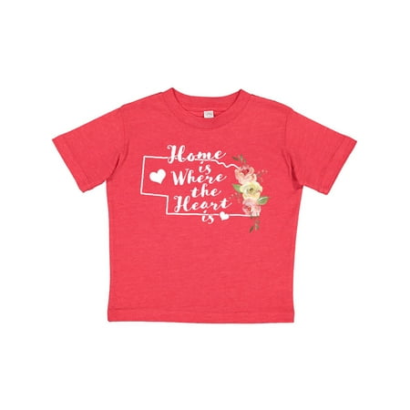 Inktastic Nebraska Home is Where the Heart is with Watercolor Floral Gift Toddler Boy or Toddler Girl T-Shirt