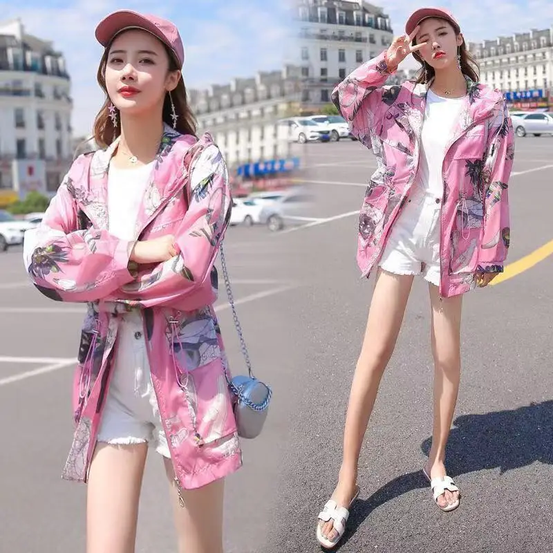 Women 2022 Summer New Thin Sun Protection Clothing Female Long Sleeve Sunscreen Jackets Ladies Breathable UV Hooded Coats E125