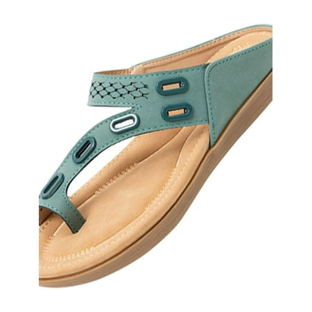 Topumt Women s Sandals Flat Leather Casual Slippers for Women & Ladies Flip-Flops Ring Open-Toe Slide Footbed for Teenagers/Girls