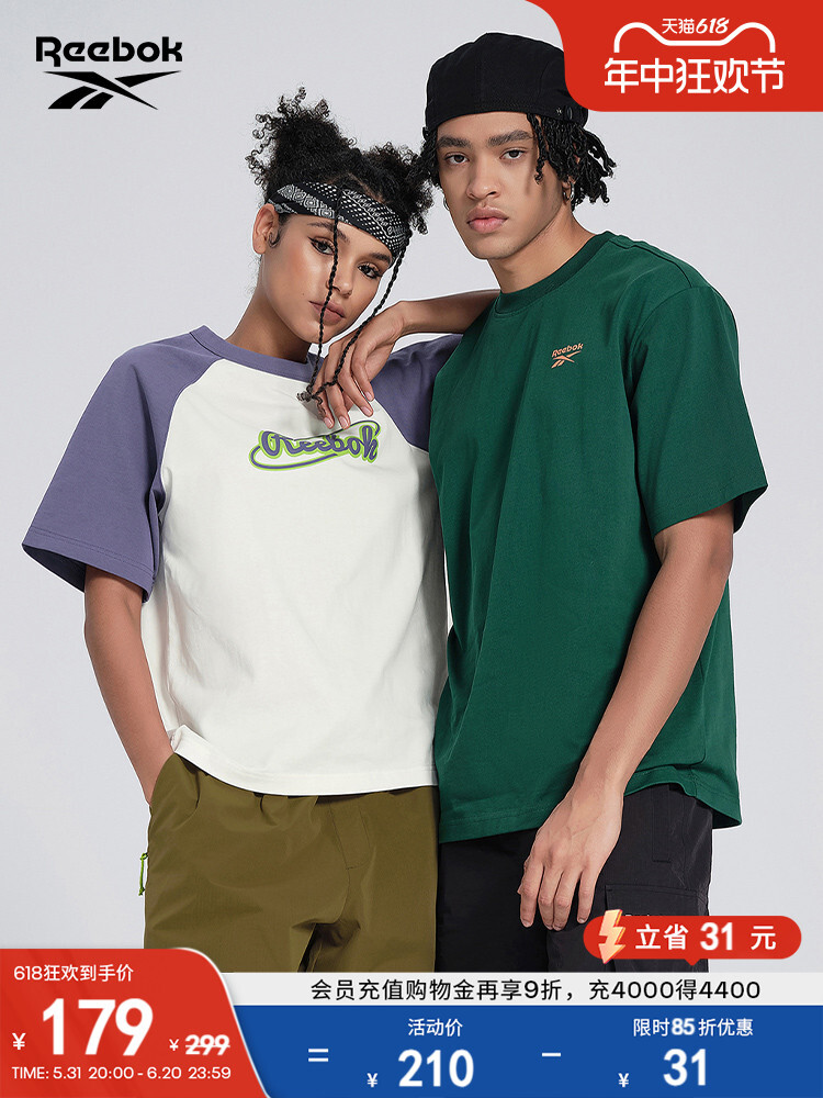 Футболка женская Reebok с рукавами реглан и цветными блоками, белый / лиловый