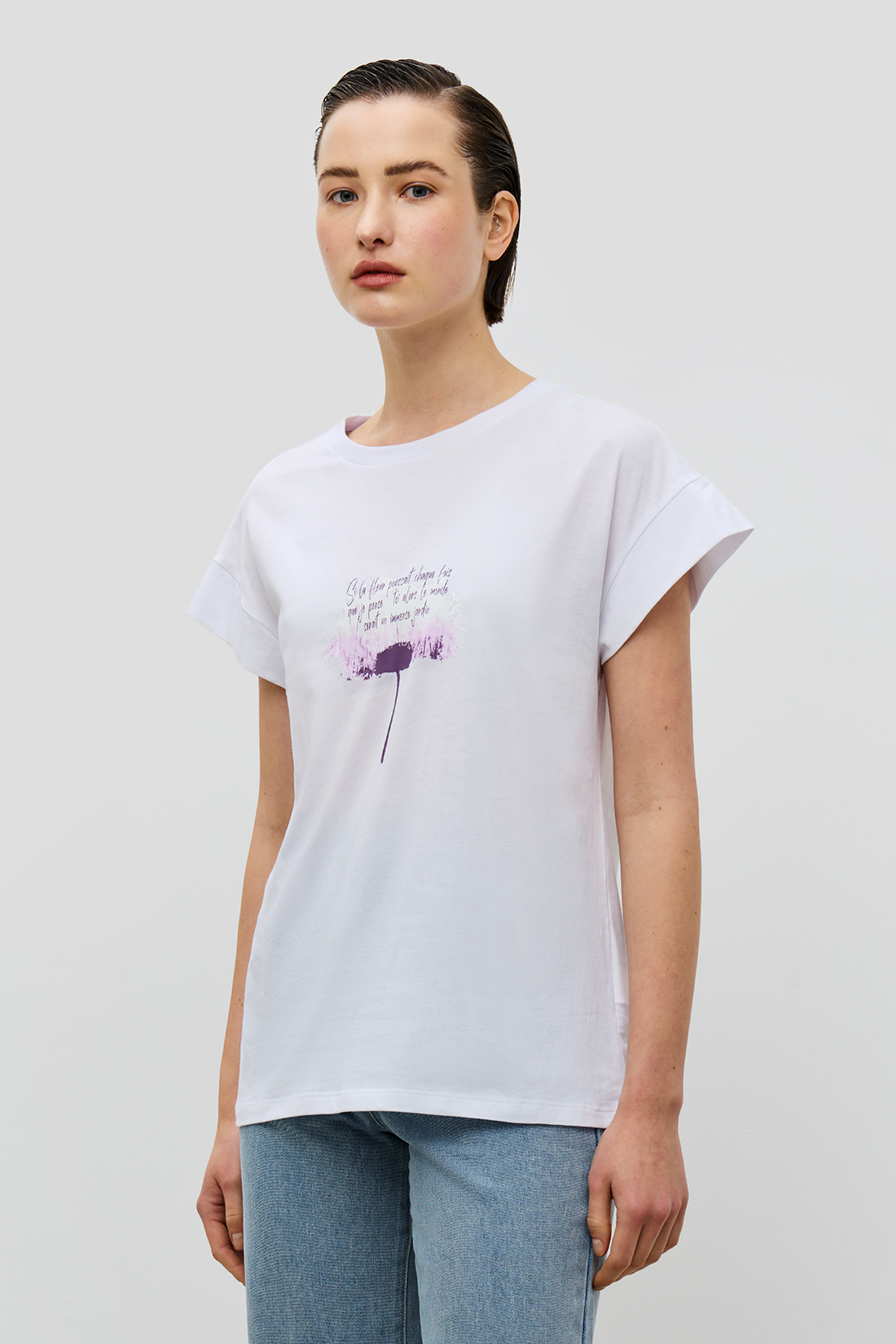 Женская футболка с романтическим цветочным принтом из весенне-летней коллекции Baon впишется в повседневные летние образы, а также в не строгие комбинации для офиса. Модель в нейтральных расцветках сочетается со всеми цветами, а свободный крой можно комбинировать с одеждой в разных стилях: с шортами, джинсами и расклешенными юбками получится расслабленный образ для отпуска, развлечений и дружеских встреч, с брючным костюмом в стиле casual можно отправиться на неформальную деловую встречу или на работу. Футболка с непринужденным рисунком не потеряет актуальности благодаря выверенному правильному крою и ненавязчивому некрупному узору.Летняя футболка с принтом выполнена из невесомого, дышащего джерси. Натуральная хлопковая ткань создает хорошую вентиляцию воздуха и терморегуляцию, выводит излишки влаги из изделия и быстро сохнет. Хлопковое джерси имеет плотную не мнущуюся структуру, хорошо тянется и не деформируется. В изделиях из него комфортно круглый год, но особенно летом.Женская футболка свободного кроя с цветочным рисунком добавит романтичности образу, легко впишется в любой комплект женского гардероба в любой сезон. Универсальный, комфортный крой не потеряет актуальности, так как удобство, практичность и нежный принт – вневременные тренды.