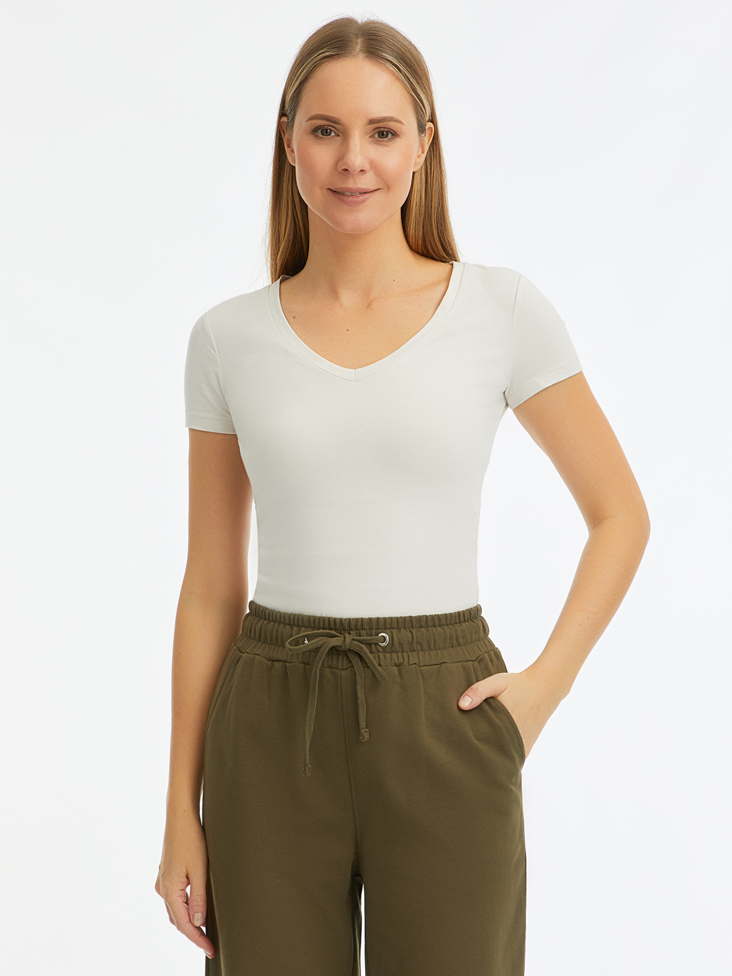 Базовая хлопковая футболка. Модель полуприталенного кроя мягко прилегает к фигуре. Ультракороткий рукав придает футболке легкость и женственность. V-образный вырез обработан тонкой трикотажной резинкой. Внутренний шов на горловине скрыт тесьмой. Рукава и нижний край прострочены. Небольшая вышивка украшает спинку. Хлопковый трикотаж с минимальной долей эластана легок, комфортен и обладает замечательными гигиеническими свойствами. Хлопковая футболка сделает любую фигуру женственной и станет частью разных повседневных комплектов. Прямая юбка мини, трапеция или джинсовый сарафан создадут с ней практичный городской лук, который можно дополнить босоножками на платформе и сумкой-пакетом. Для встреч с друзьями, отдыха и путешествий футболку можно сочетать с джинсами, шортами, чиносами или льняными брюками. Удобные слипоны, кеды или сандалии отлично дополнят свободный образ. Рюкзак и солнцезащитные очки завершат лук. Базовая футболка – уже сегодня вы знаете, что наденете завтра!