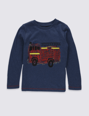 Футболка из чистого хлопка "Пожарная машина" с длинным рукавом для мальчика 3 мес - 5 лет