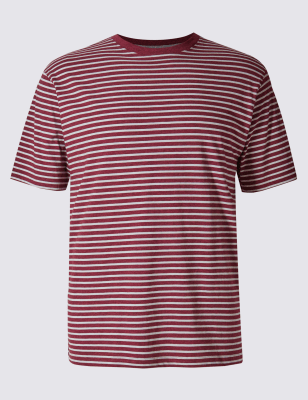 Футболка из чистого хлопка в тонкую полоску с контрастной горловиной, Красный микс