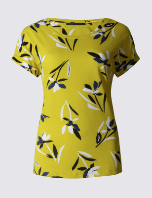 Футболка из чистого хлопка с цветочным принтом, Желтый микс