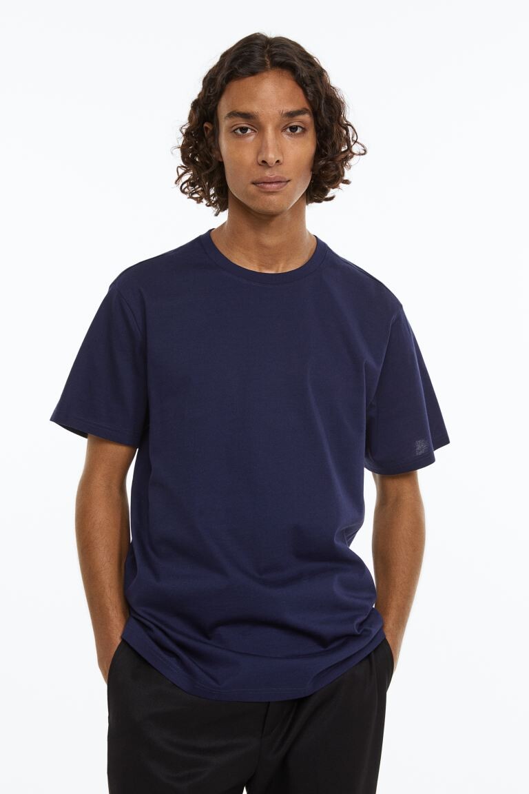 Футболка классического кроя с круглым вырезом H&M, темно-синий