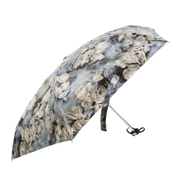 Ladies Outdoor Five-folding Floral Umbrella Mini Pocket Sun Rain Dual-use Umbrella Sunscreen Protection Rose Flower Umbrella