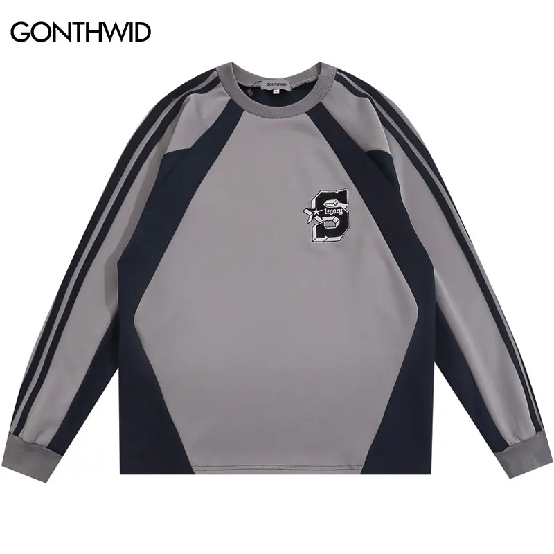 Футболка мужская Спортивная составного кроя с вышивкой, уличная одежда в стиле хип-хоп, ретро, с длинными рукавами, со звездами, буквами, в американском стиле, 2023