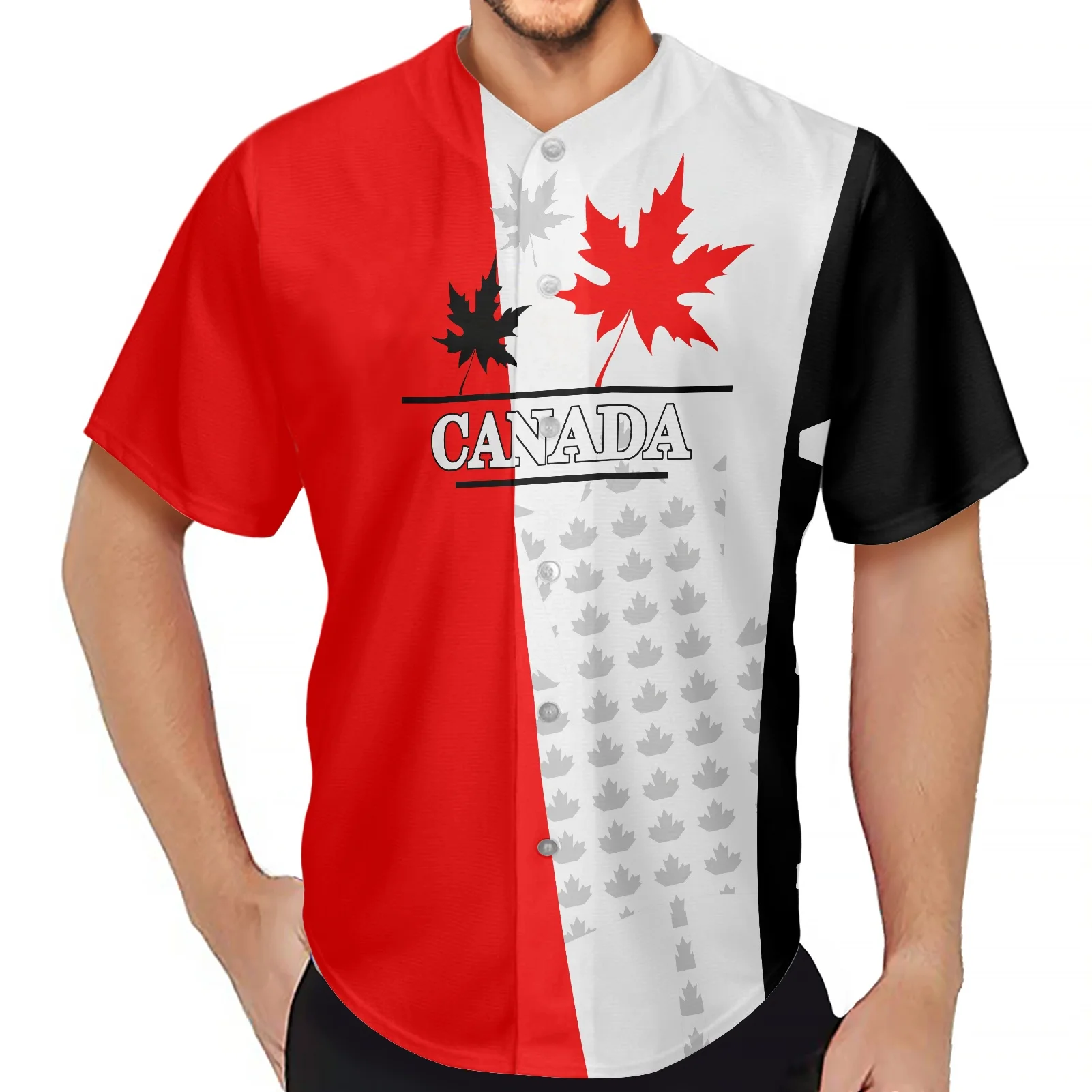 Футболка мужская бейсбольная с принтом канадского флага и кленовых листьев