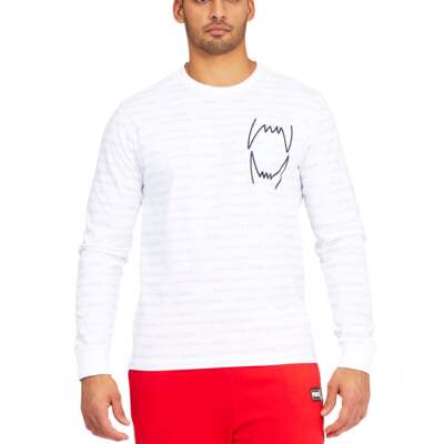 Футболка мужская белая повседневная Puma Hoops Aop Crew Neck с длинным рукавом 530590-02, Белый, Puma Hoops Aop Crew Neck Long Sleeve T-Shirt