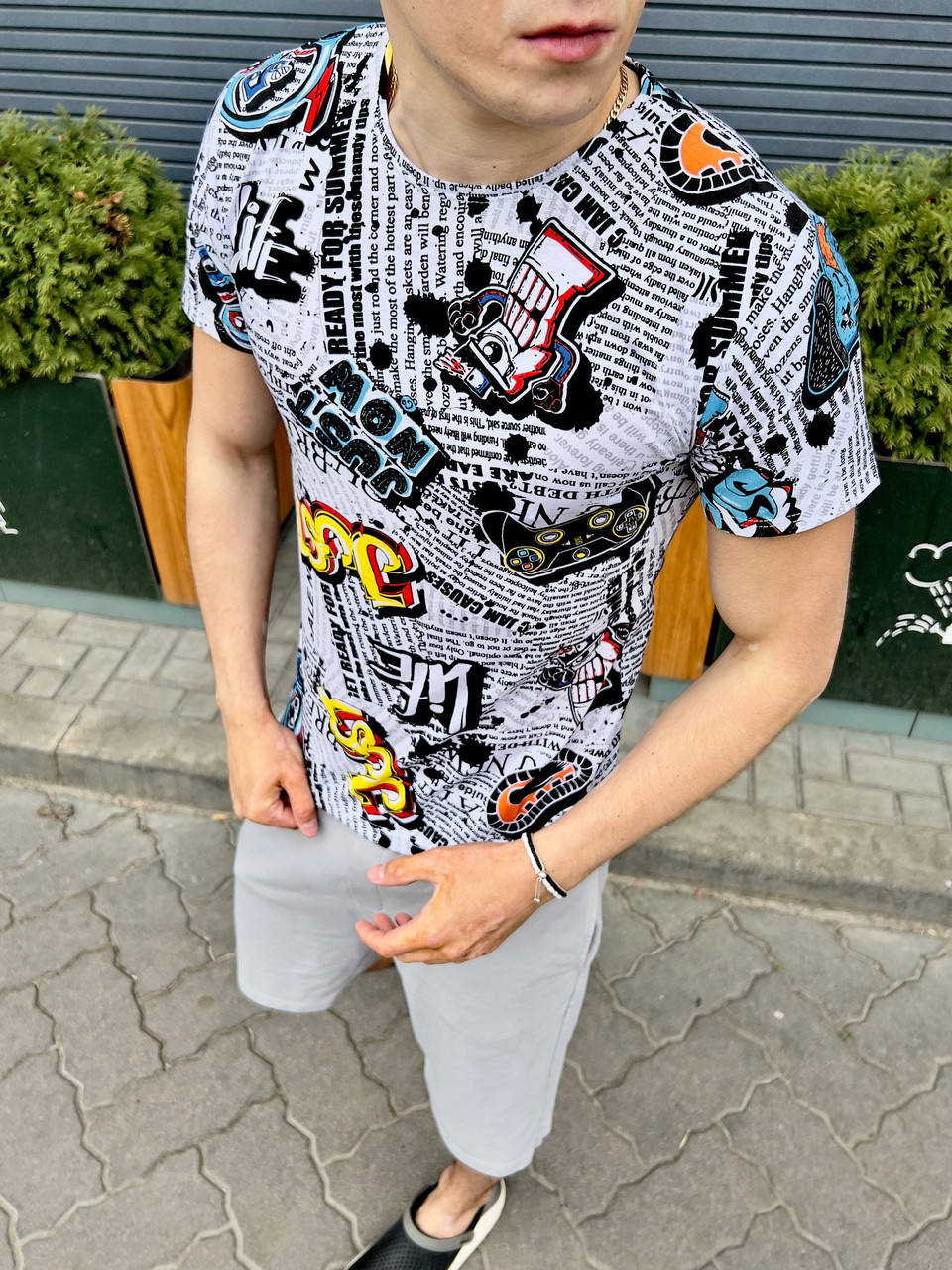 Футболка мужская белая с принтом и надписью хлопковая XL