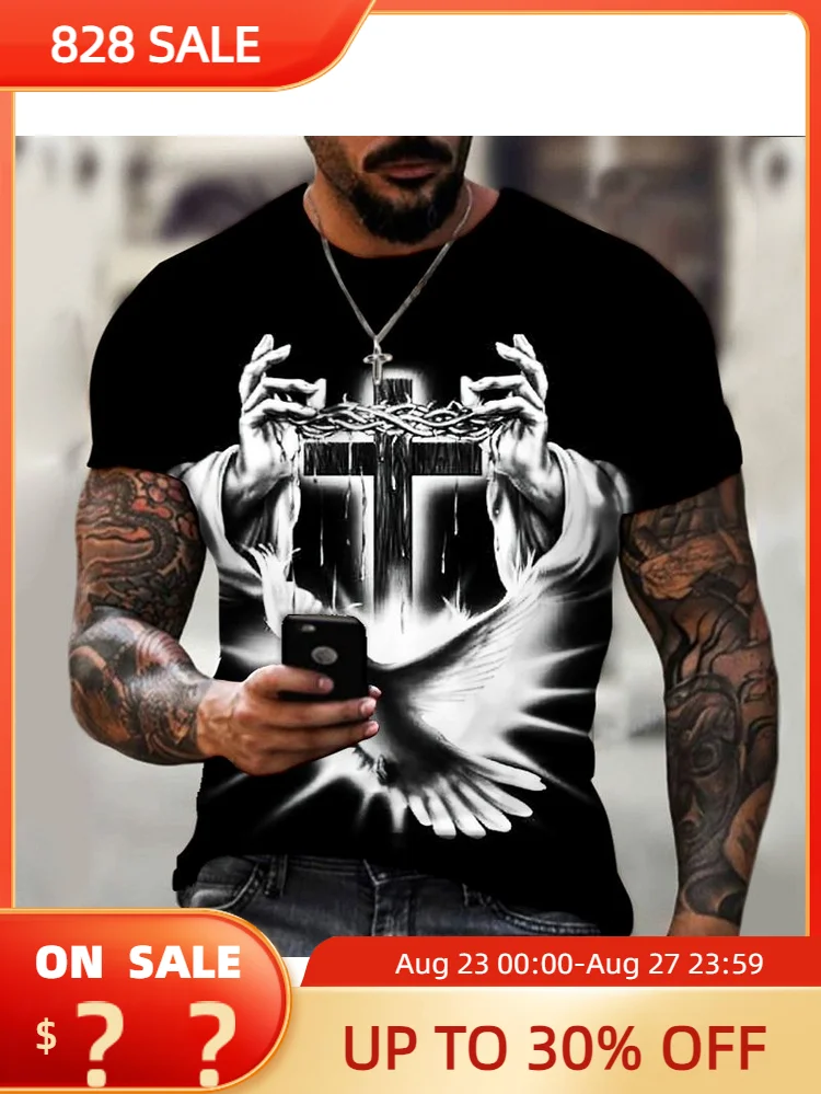 Футболка мужская быстросохнущая с коротким рукавом и принтом Креста, лето 2023