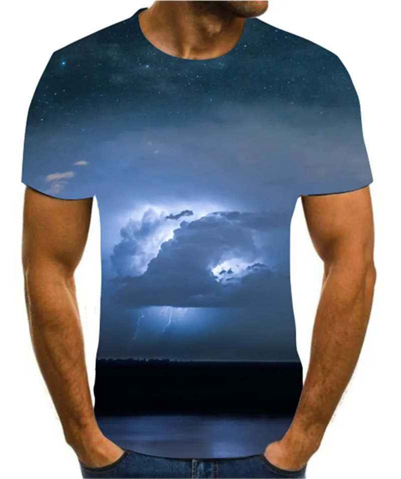 Футболка мужская и женская с 3D-принтом, черный Пляжный топ с принтом пейзажа и молнией, с круглым вырезом, на лето