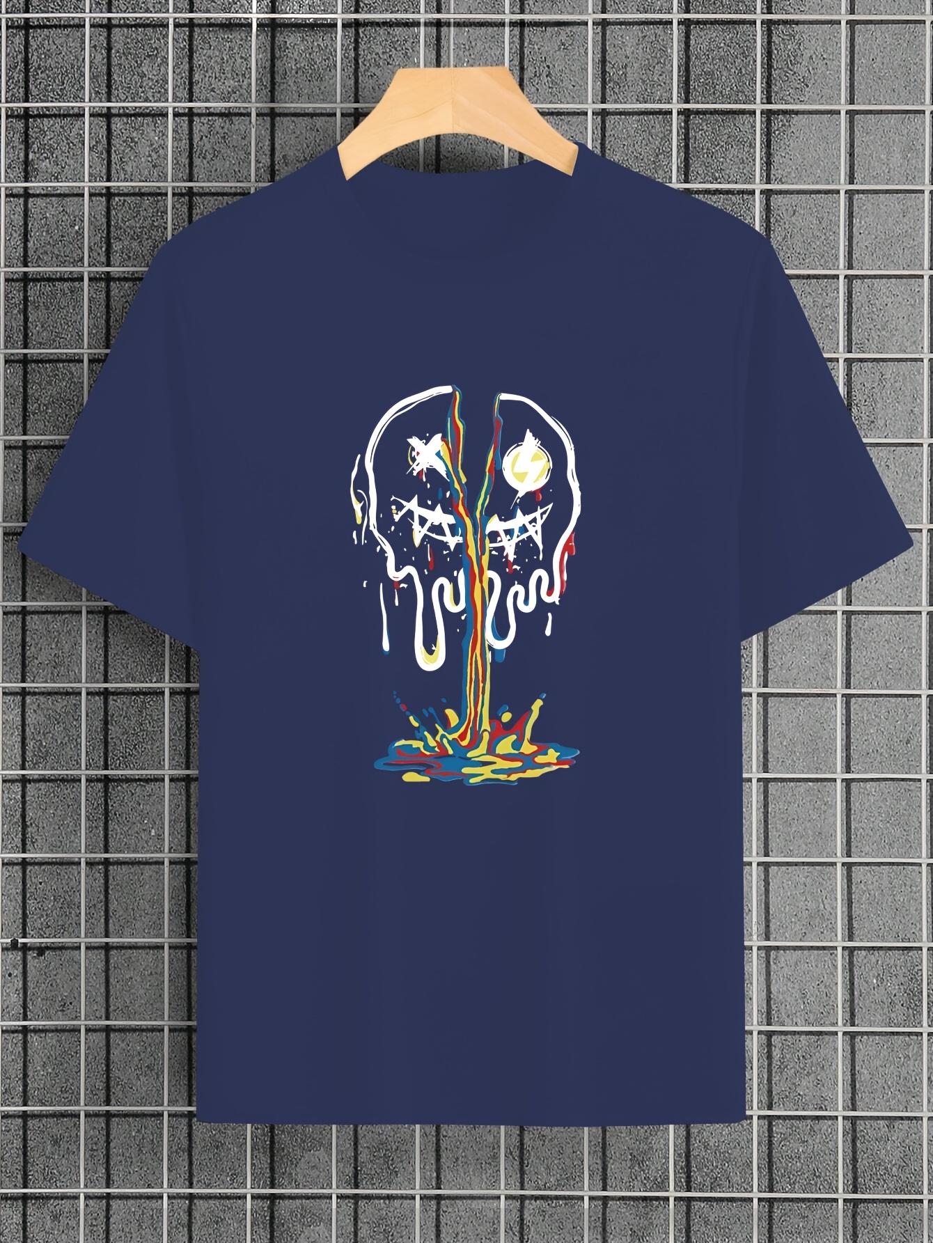 Футболка мужская модная с принтом черепа и цветочного лица - повседневная, черного цвета, с круглым вырезом, дышащая смесь, можно стирать в стиральной машине летом XXXXXL темно-синий