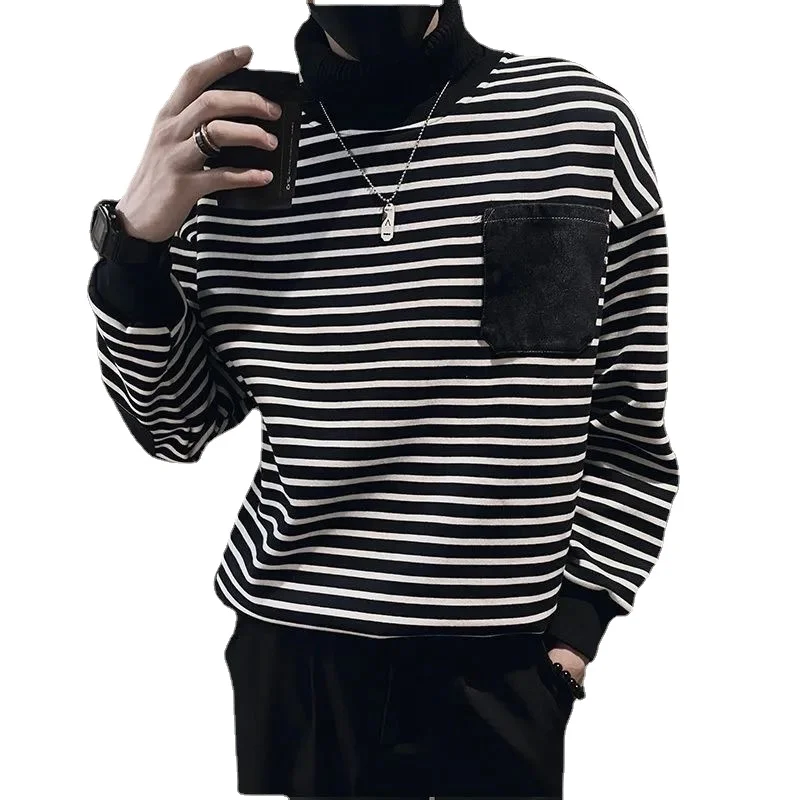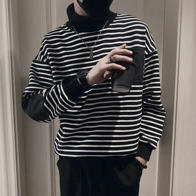 Футболка мужская оверсайз из двух предметов, в полоску, с длинным рукавом