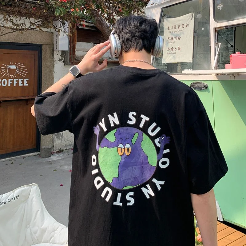 Футболка мужская оверсайз с графическим принтом, оригинальная уличная одежда с изображением картонных монстров, свободная повседневная Милая рубашка с коротким рукавом, в стиле Харадзюку, на лето