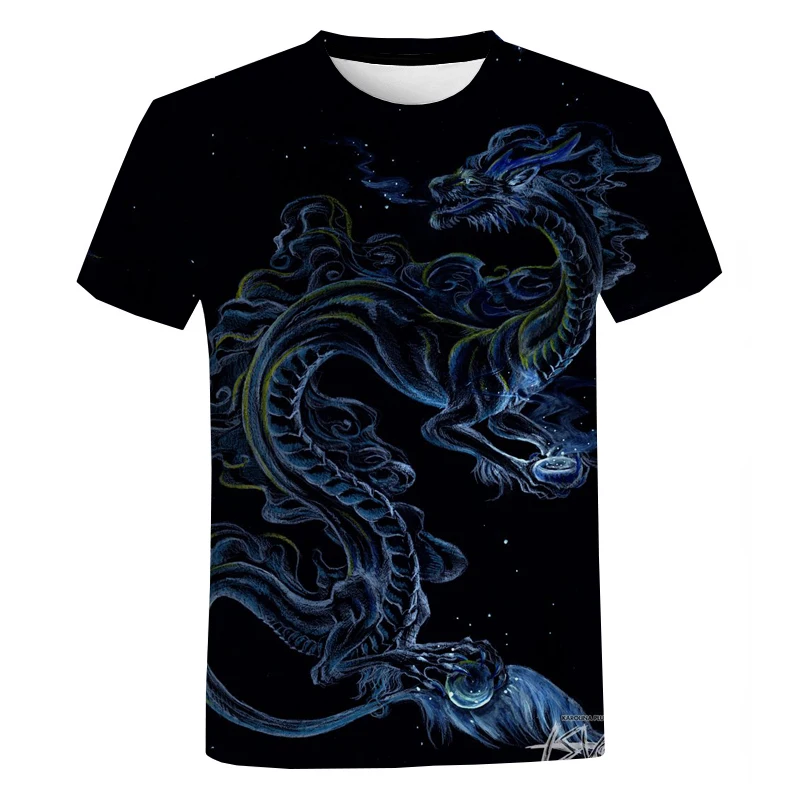 Футболка мужская оверсайз с коротким рукавом и 3D-принтом дракона