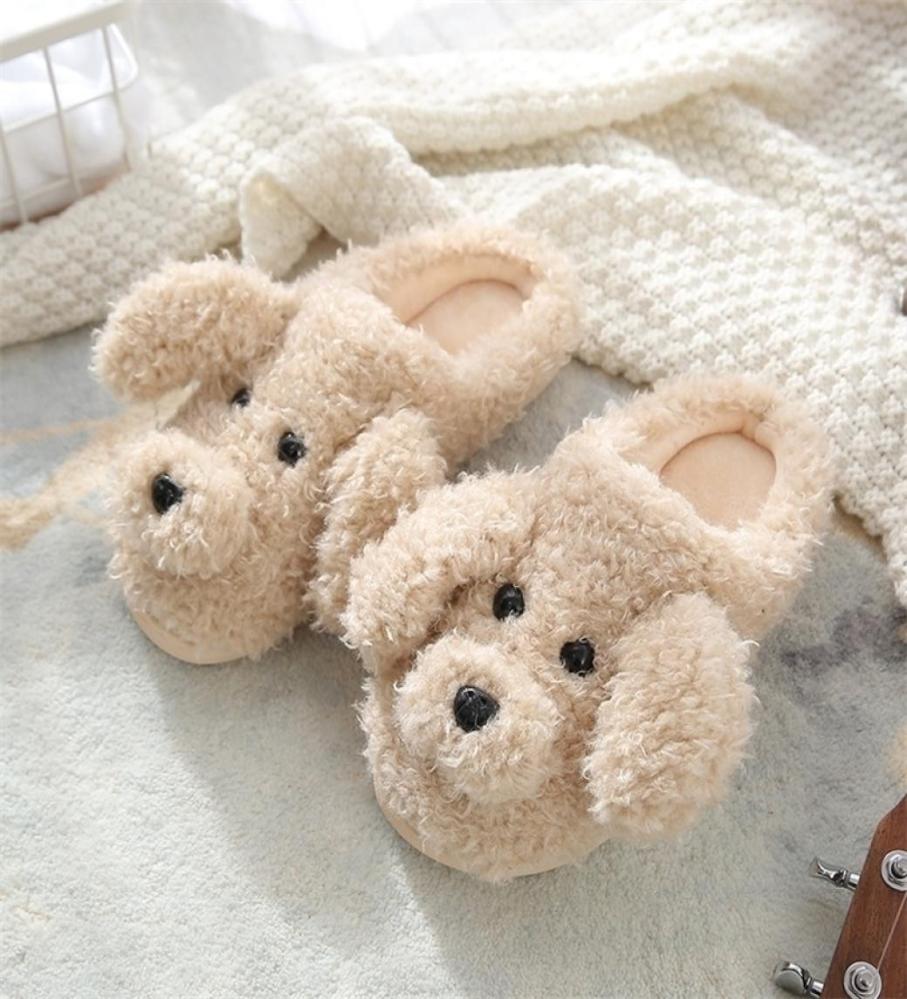 Fur Dog Slippers New High Quality Cute Cartoon Animal Women Winter Warm Plush Home Fluffy Slides Cotton House Shoes 2010266078423, Lightgreen