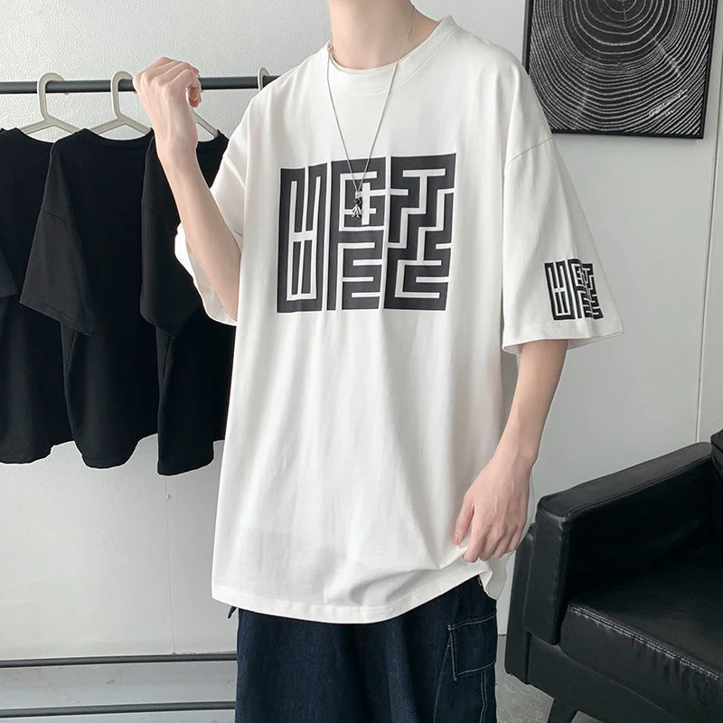 Футболка мужская оверсайз с принтом, модный брендовый топ с круглым вырезом и коротким рукавом, Повседневная тенниска в стиле Харадзюку на ...