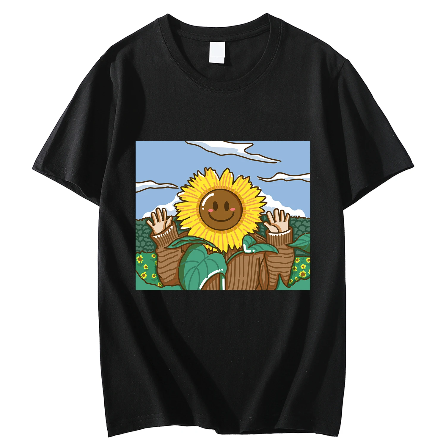 Футболка мужская оверсайз с принтом подсолнуха, тенниска с короткими рукавами, одежда с принтом масляной живописи, лето