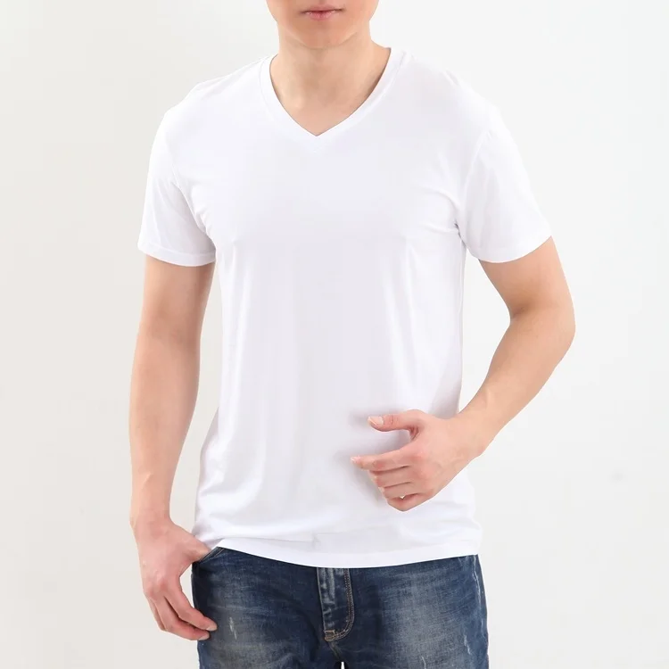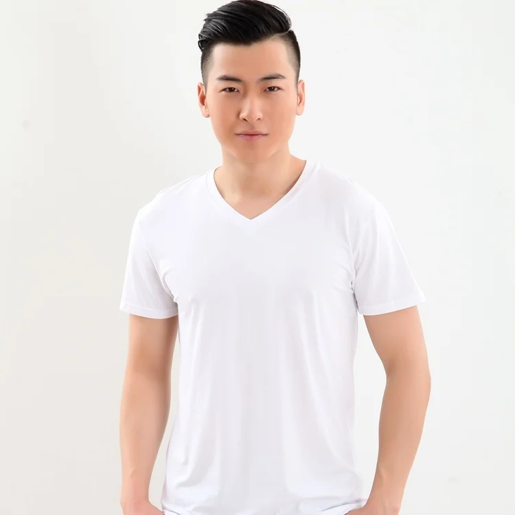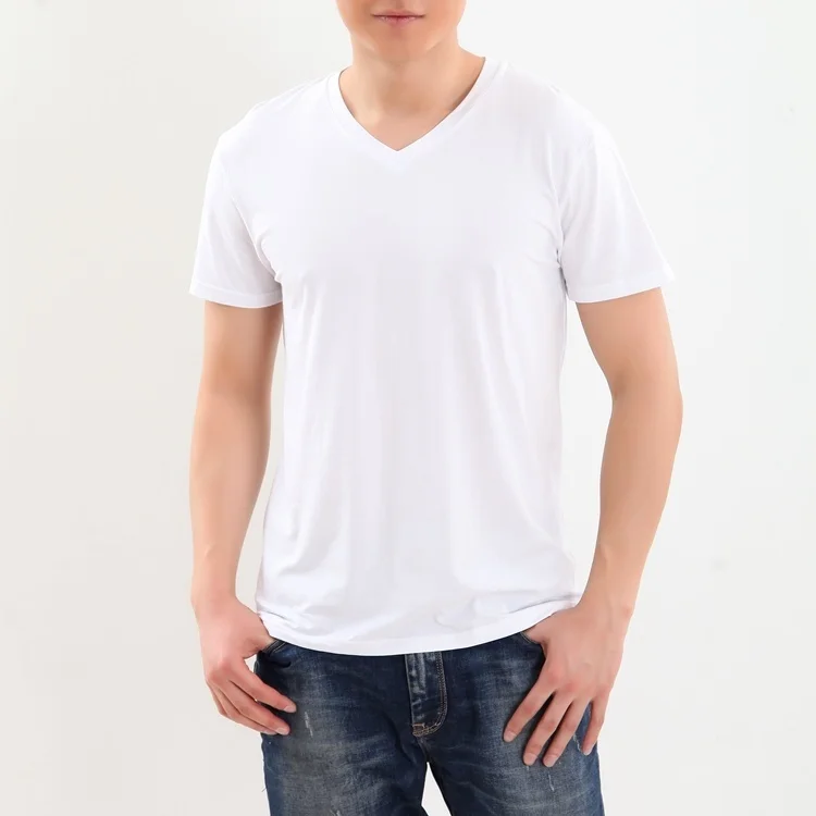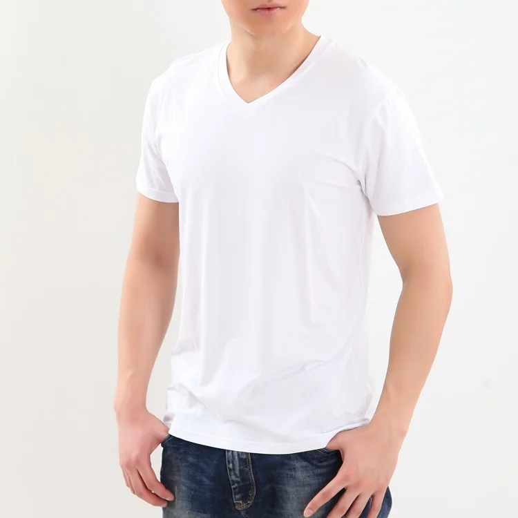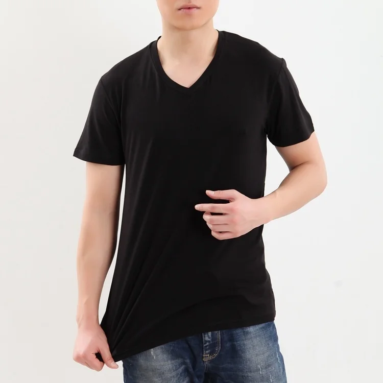 Футболка мужская однотонная с коротким рукавом и V-образным вырезом, V22