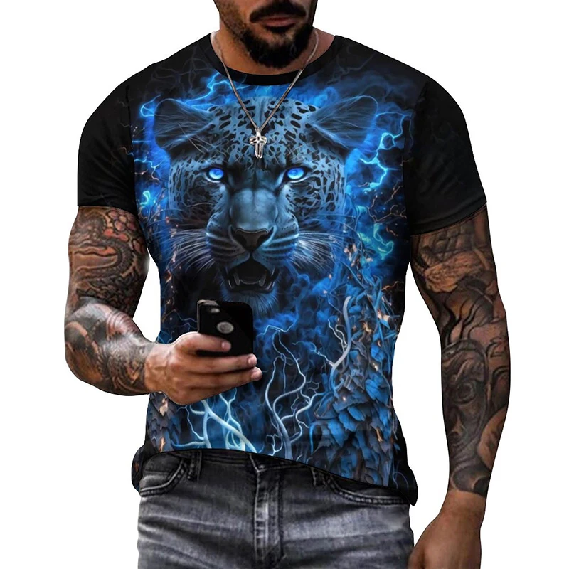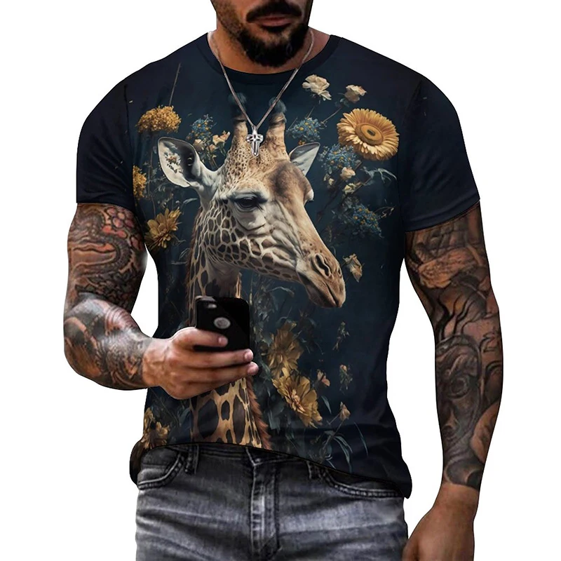 Футболка мужская с забавными животными, жирафом, леопардом, круглым вырезом и короткими рукавами