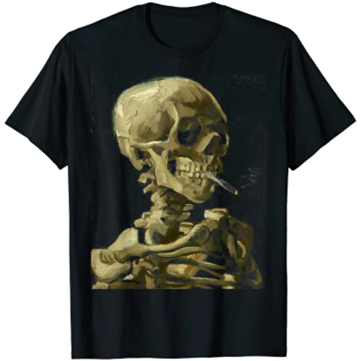 Футболка мужская с изображением черепа Ван Гога и скелета сигарет, хлопок, защита от курения, повседневная Всесезонная, в стиле Харадзюку