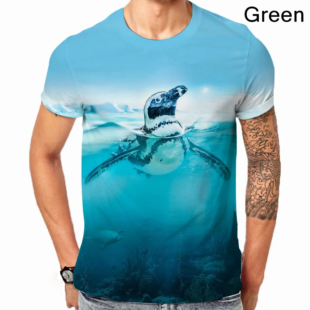 Футболка мужская с коротким рукавом, круглым вырезом и 3D-принтом пингвинов