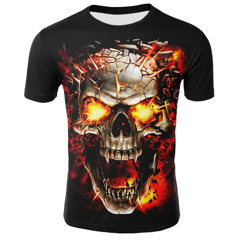 Футболка мужская с круглым вырезом и коротким рукавом, Повседневная рубашка в стиле хип-хоп с 3D-принтом черепа, одежда для Хэллоуина