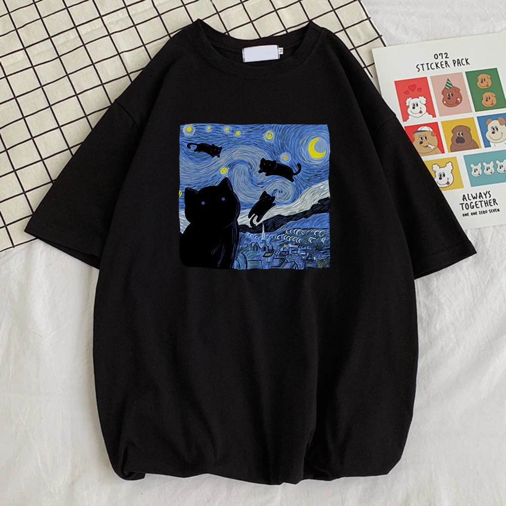 Футболка мужская с принтом Винсента Ван Гога, звездного неба, коротким рукавом и круглым вырезом
