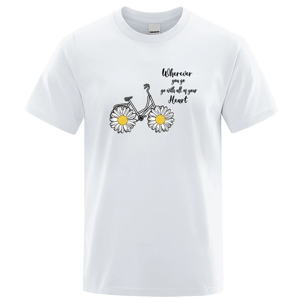 Футболка мужская с принтом хризантемы, модный брендовый Повседневный Свободный Топ в стиле ретро, с надписью «Go With All Of Your Heart»