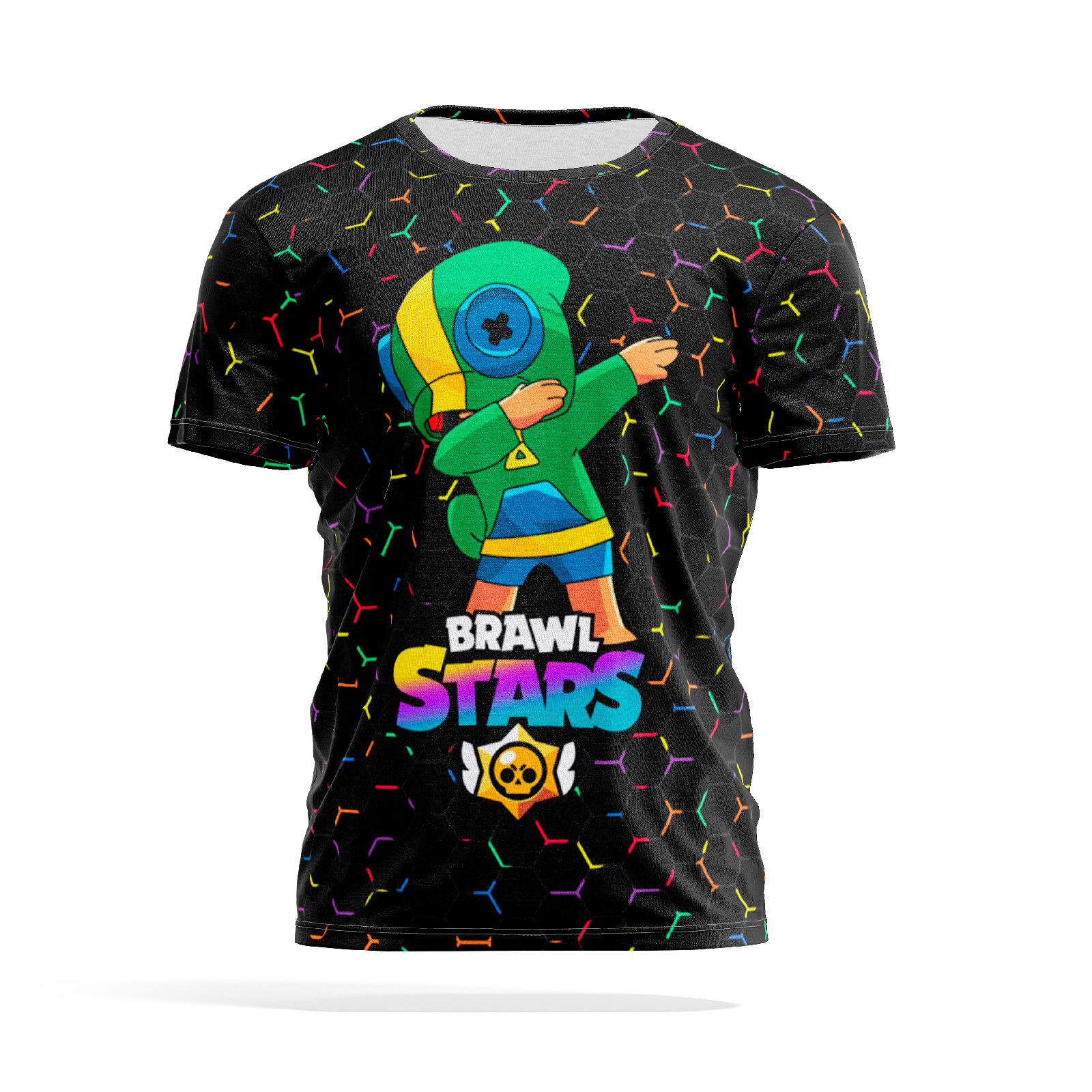 Футболка PANiN Brand. Дышащая 3D футболка из 100% синтетического материала. Печать 3Д рисунка осуществляется методом сублимационной печати, что позволяет сохранить насыщенность и яркость рисунка даже после 100 стирок. Стирка при температуре до 40 градусов, в первую стирку не смешивать с белыми вещами. Принт стойкий, не отстирывается. Гладить можно по поверхности рисунка. Футболка станет отличным подарком мужчине на 23 февраля, День рождения или по любому поводу. Геймерам / Brawl Stars / Brawl Stars Leon Dab