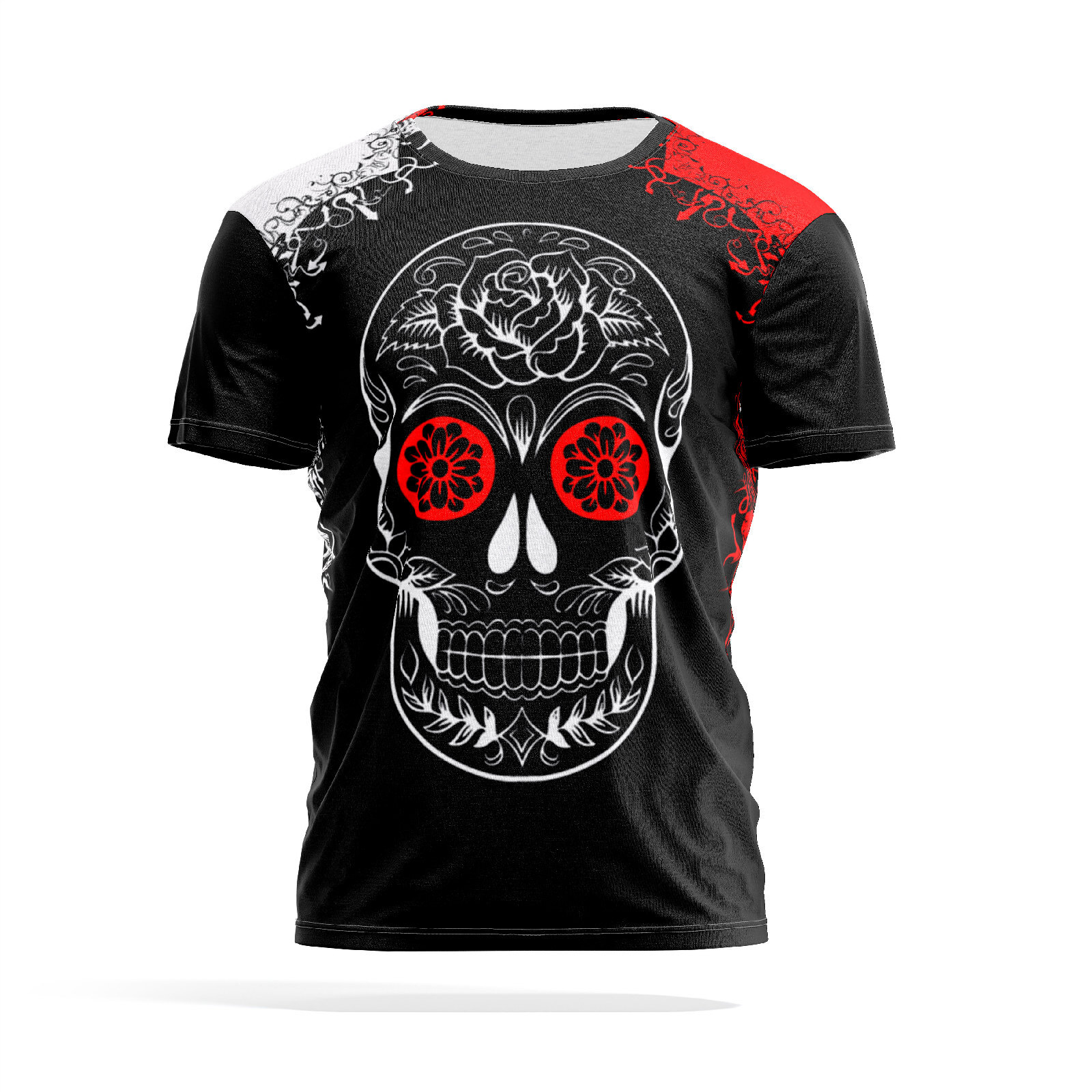Футболка PANiN Brand. Дышащая 3D футболка из 100% синтетического материала. Печать 3Д рисунка осуществляется методом сублимационной печати, что позволяет сохранить насыщенность и яркость рисунка даже после 100 стирок. Стирка при температуре до 40 градусов, в первую стирку не смешивать с белыми вещами. Принт стойкий, не отстирывается. Гладить можно по поверхности рисунка. Футболка станет отличным подарком мужчине на 23 февраля, День рождения или по любому поводу. Популярные иллюстрации / Черепа и скелеты / Red White Skull Череп