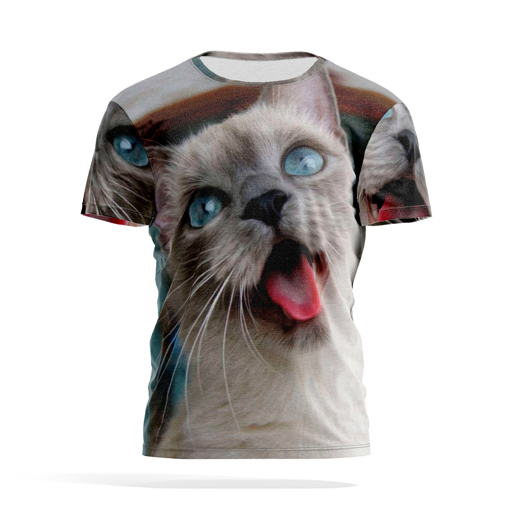 Футболка PANiN Brand. Дышащая 3D футболка из 100% синтетического материала. Печать 3Д рисунка осуществляется методом сублимационной печати, что позволяет сохранить насыщенность и яркость рисунка даже после 100 стирок. Стирка при температуре до 40 градусов, в первую стирку не смешивать с белыми вещами. Принт стойкий, не отстирывается. Гладить можно по поверхности рисунка. Футболка станет отличным подарком мужчине на 23 февраля, День рождения или по любому поводу. Звери / Коты и кошки Сиамский котенок