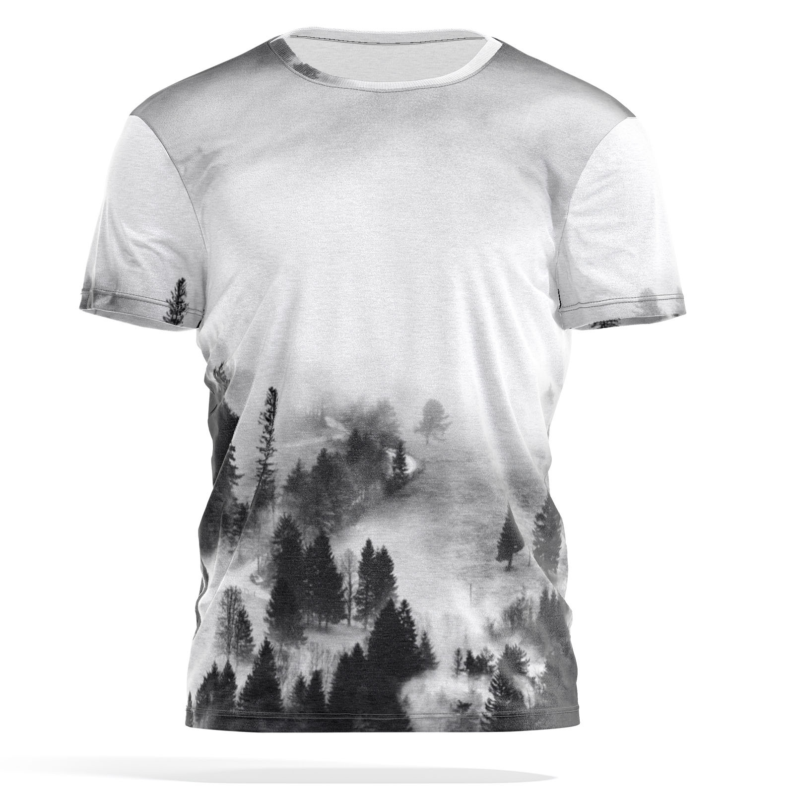 Футболка PANiN Brand. Дышащая 3D футболка из 100% синтетического материала. Печать 3Д рисунка осуществляется методом сублимационной печати, что позволяет сохранить насыщенность и яркость рисунка даже после 100 стирок. Стирка при температуре до 40 градусов, в первую стирку не смешивать с белыми вещами. Принт стойкий, не отстирывается. Гладить можно по поверхности рисунка. Футболка станет отличным подарком мужчине на 23 февраля, День рождения или по любому поводу. Популярные иллюстрации / Природа Лес и туман