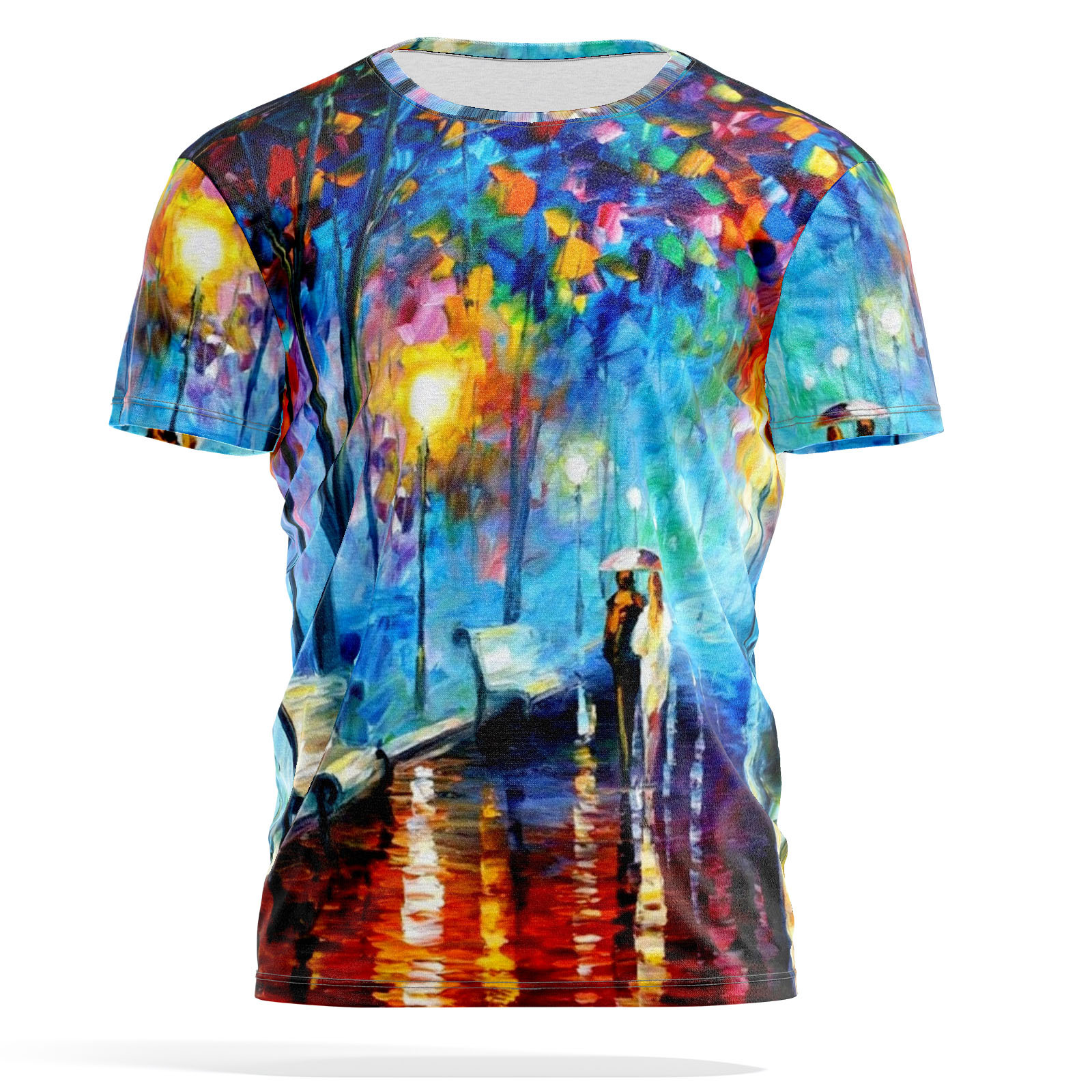 Футболка PANiN Brand. Дышащая 3D футболка из 100% синтетического материала. Печать 3Д рисунка осуществляется методом сублимационной печати, что позволяет сохранить насыщенность и яркость рисунка даже после 100 стирок. Стирка при температуре до 40 градусов, в первую стирку не смешивать с белыми вещами. Принт стойкий, не отстирывается. Гладить можно по поверхности рисунка. Футболка станет отличным подарком мужчине на 23 февраля, День рождения или по любому поводу. Популярные иллюстрации / Искусство Дождливый вечер