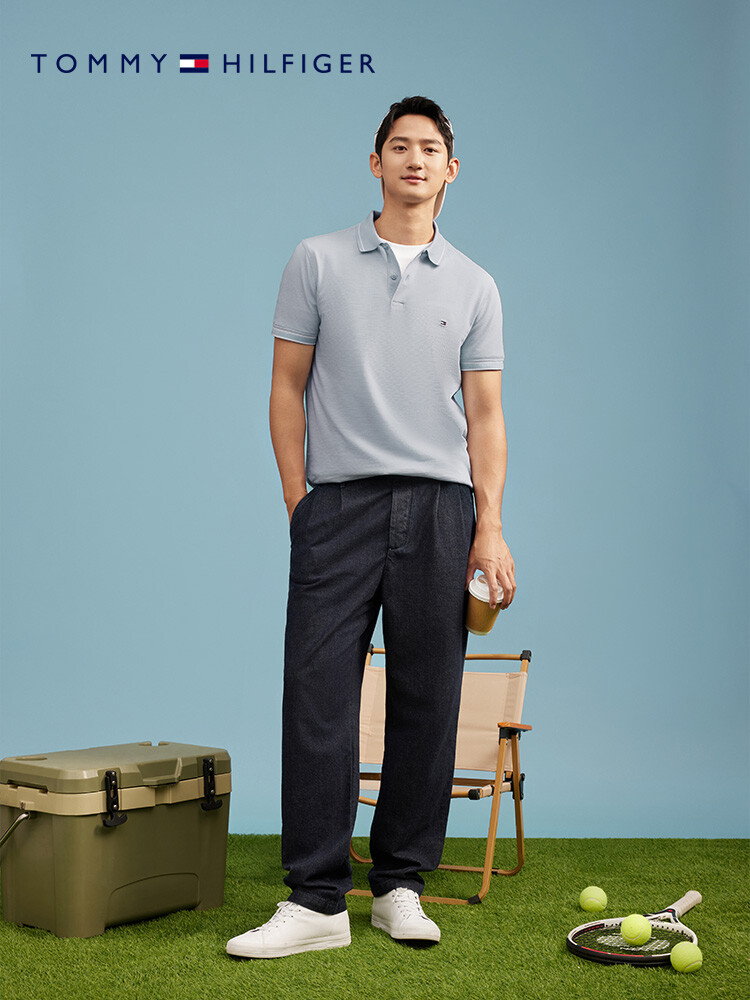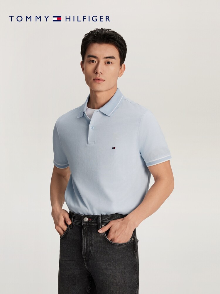 Футболка мужская Tommy Hilfiger с сетчатой цветочной отделкой, светло-голубой
