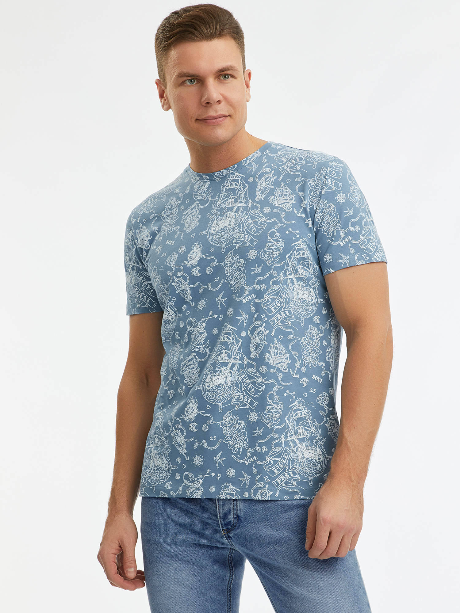 Футболка мужская oodji 5L611004I-24 синяя S, Синий, 5L611004I-24