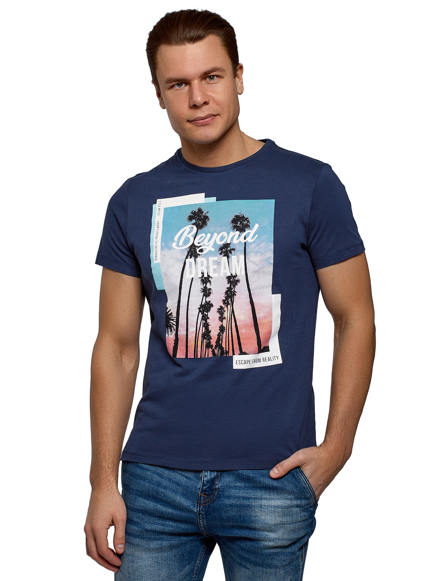 Футболка мужская oodji 5L621002I-52 синяя XS, 5L621002I-52