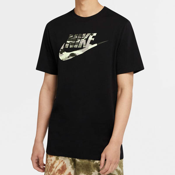 Футболка спортивная камуфляжные с круглым вырезом и галочкой Nike, черный