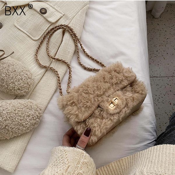 bxx] winter plush crossbody bags for women 2019 fashion chain shoulder messenger bag lady warm phone handbags purses hj606