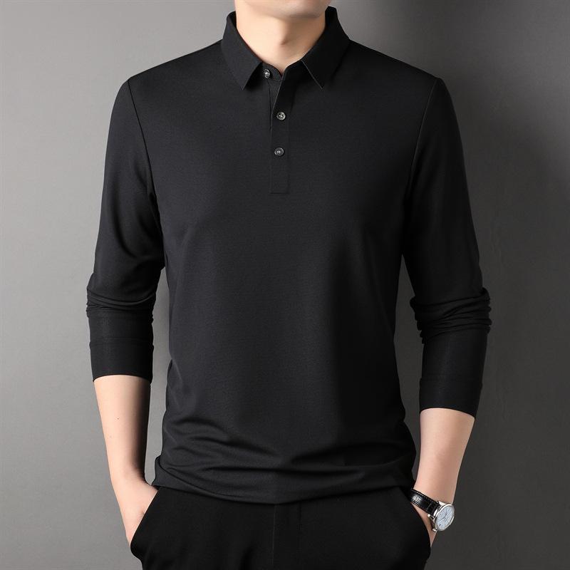 Футболка с длинным рукавом, мужская весенняя новинка в корейском стиле, повседневный тонкий однотонный топ с воротником-поло для молодежи и среднего возраста 4XL