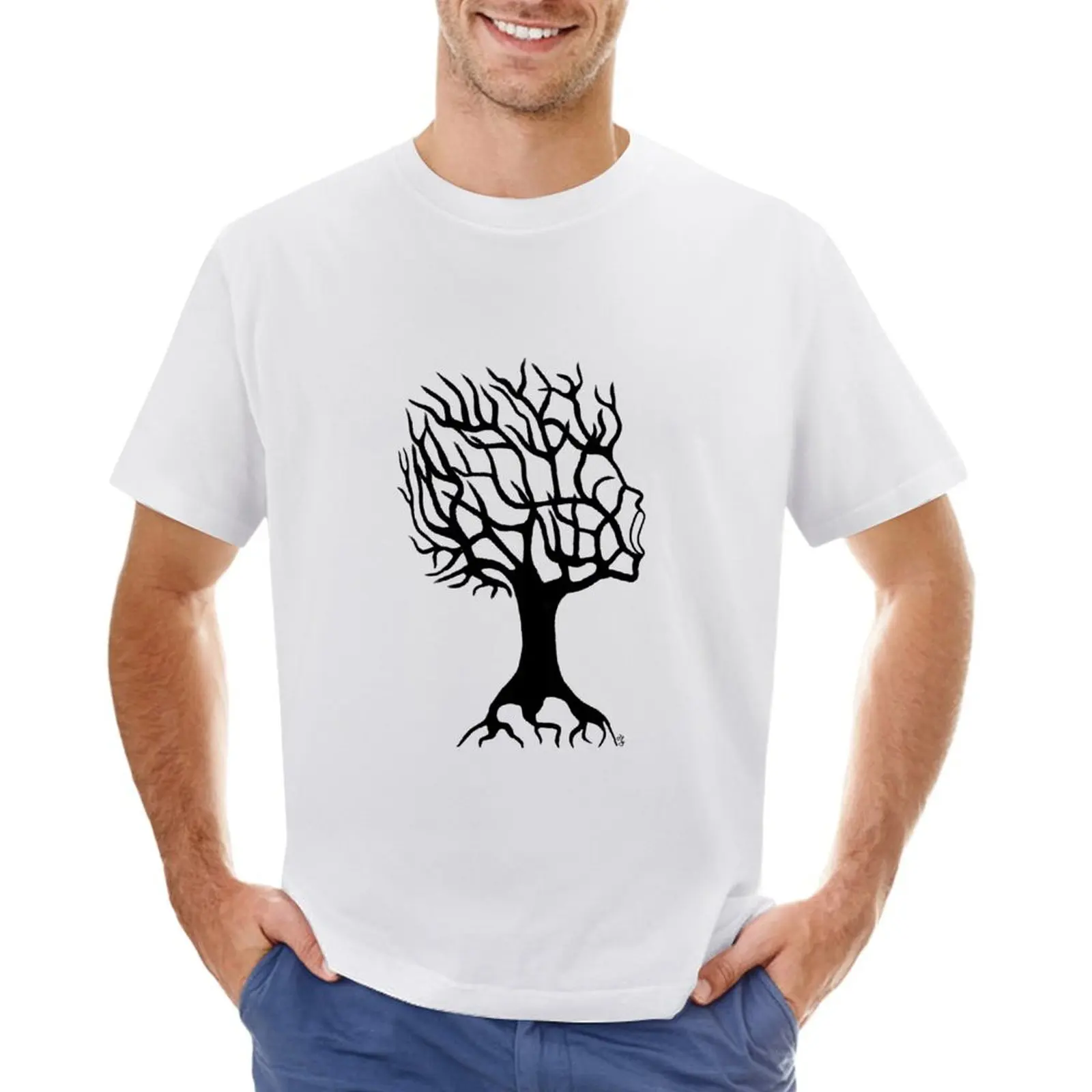 Футболка с изображением кричащего дерева, кавайная одежда, большие размеры, корейская мода для мальчика, мужские футболки с графическим рисунком