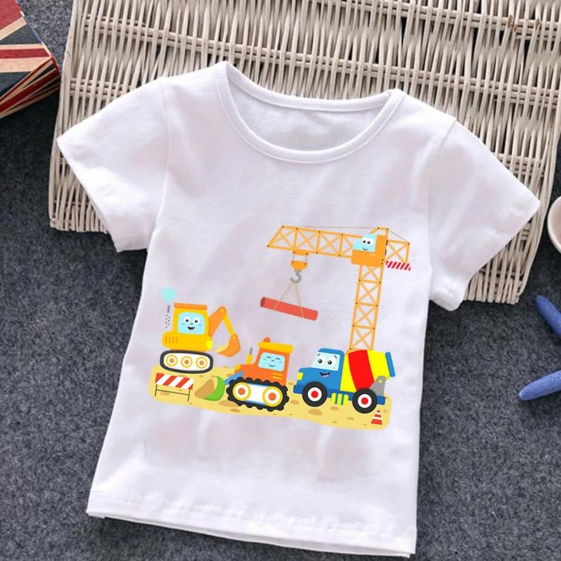Футболка с изображением мультяшной машины, экскаватора, крана, футболка для мальчиков и девочек, хипстерская хип-хоп-футболка, крутая футболка с коротким рукавом, унисекс-футболка 2T(90cm)