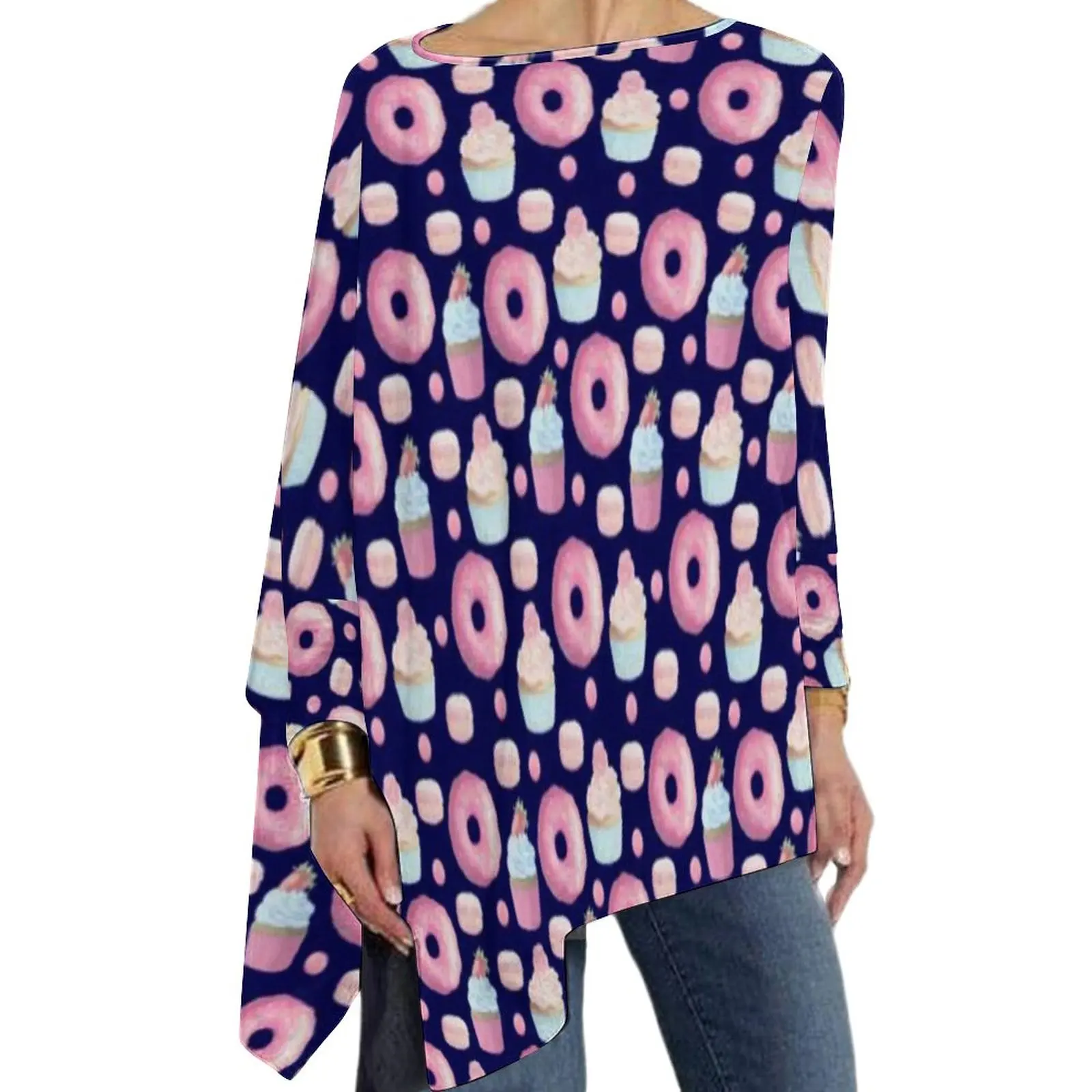 Футболка с изображением пончика, Пончика, кексов и макаронов, уличная мода, футболки с длинным рукавом, Современная футболка с рисунком, вес...
