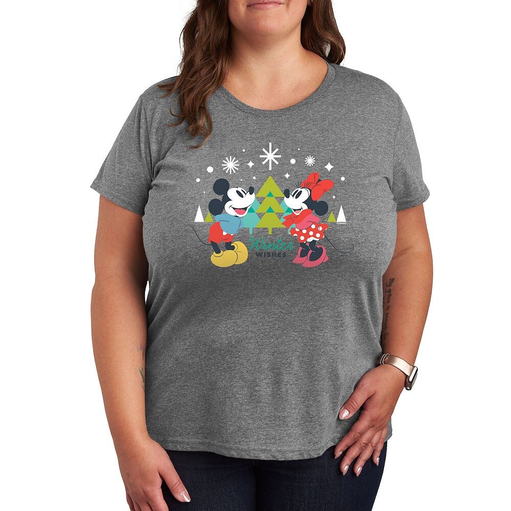 Футболка Disney's Mickey & Minnie Mouse Plus с рисунком Winter Wishes, цвет Heather Gray